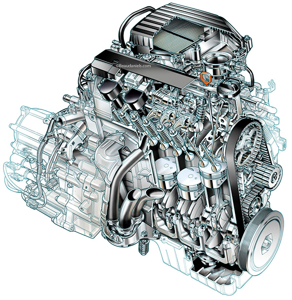 Technical Illustration, Beau And Alan Daniels. - Cutaway Automotive Engines